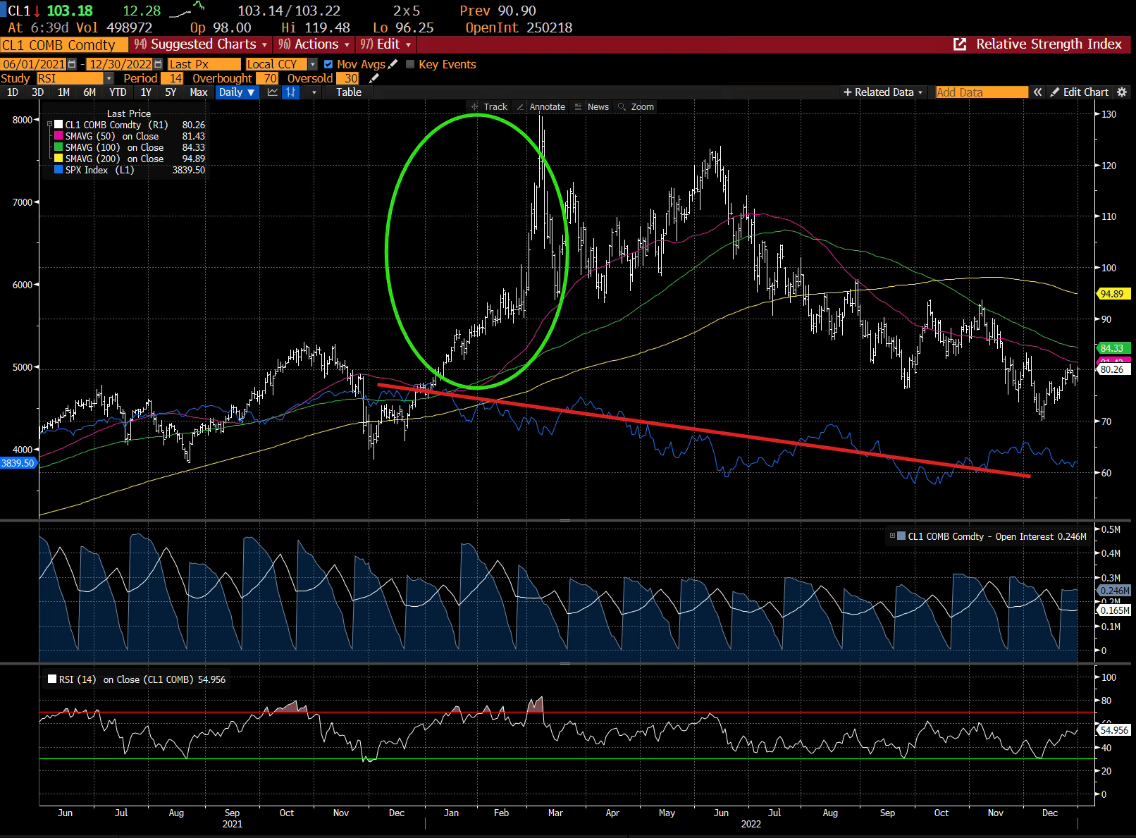The outcome was also similar. Oil prices proceeded to grind higher along with the stock market.