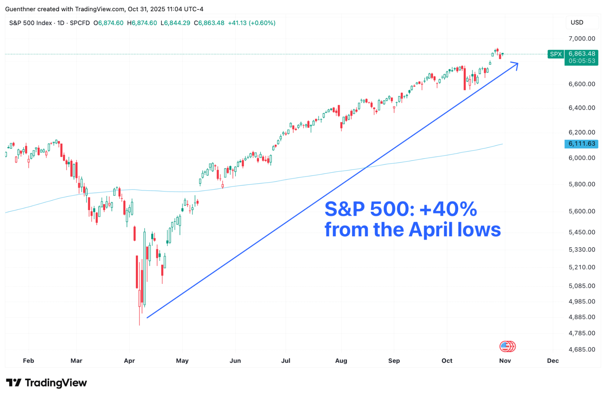 The result: New all-time highs, and a clean, unbroken uptrend in the S&P 500:
