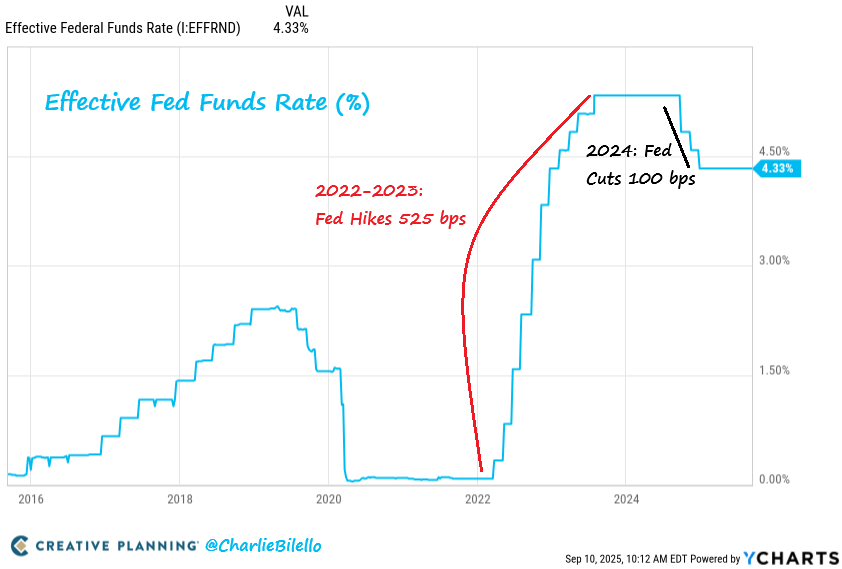 On the chart, you can see that so far, the Fed has reversed less than one-quarter of the hikes it implemented over the last few years. This means the Fed has a lot more firepower to use if it deems it necessary.