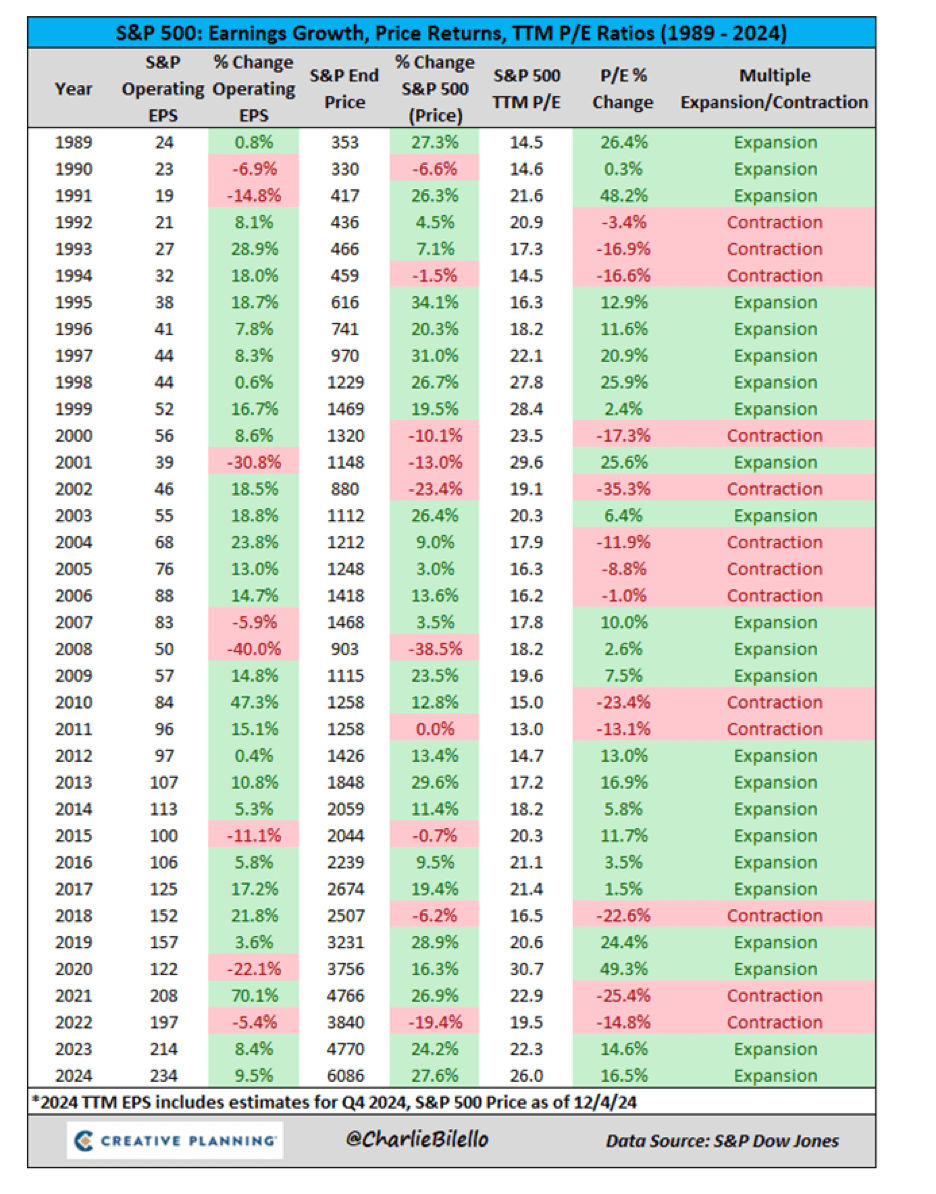 “On the chart, you can see that there’s a high correlation between growth in earnings at the S&P 500 and price performance. Valuation didn’t matter.