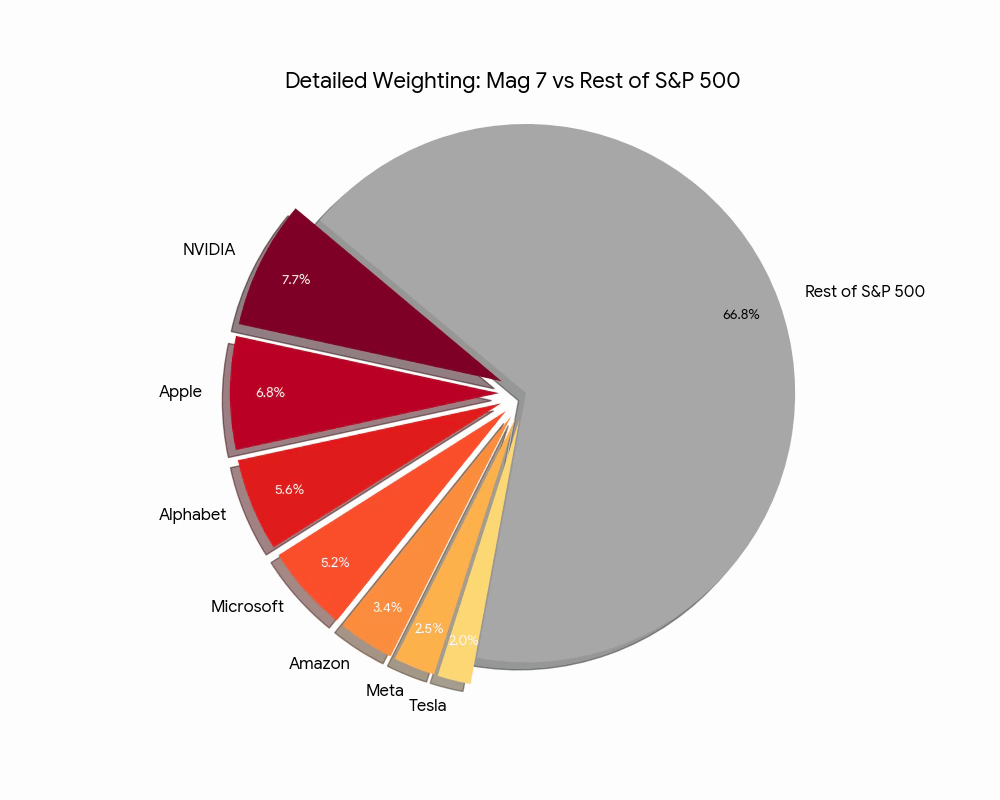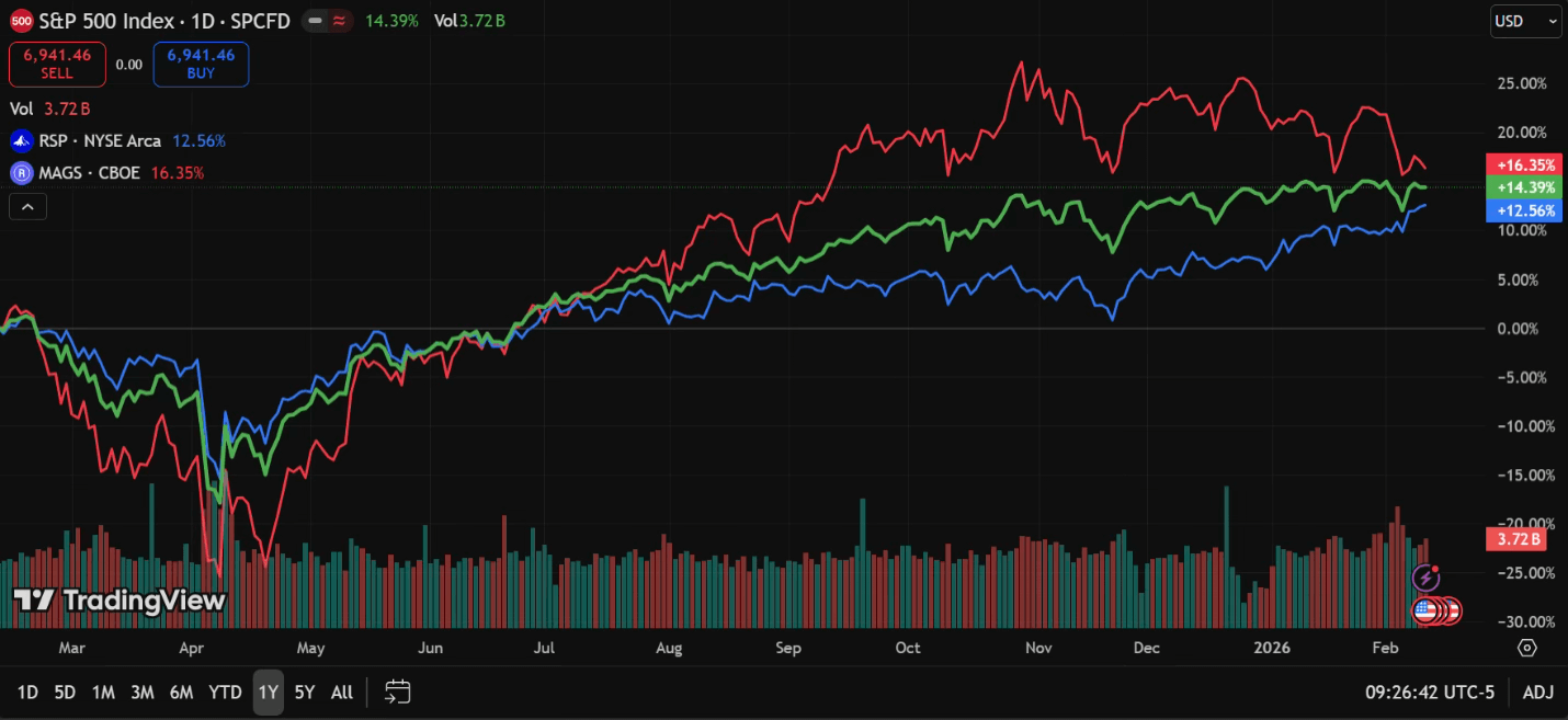 The Mag 7 now makes up 31% of the entire S&P 500. Nearly a third of the index and only seven companies. When those seven stocks sit still, the index sits still, even if the other 493 are ripping.