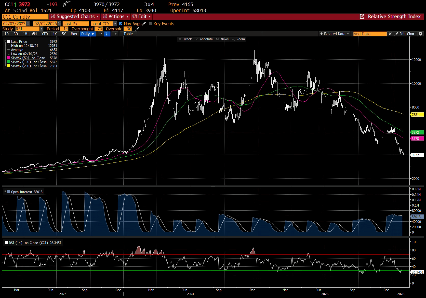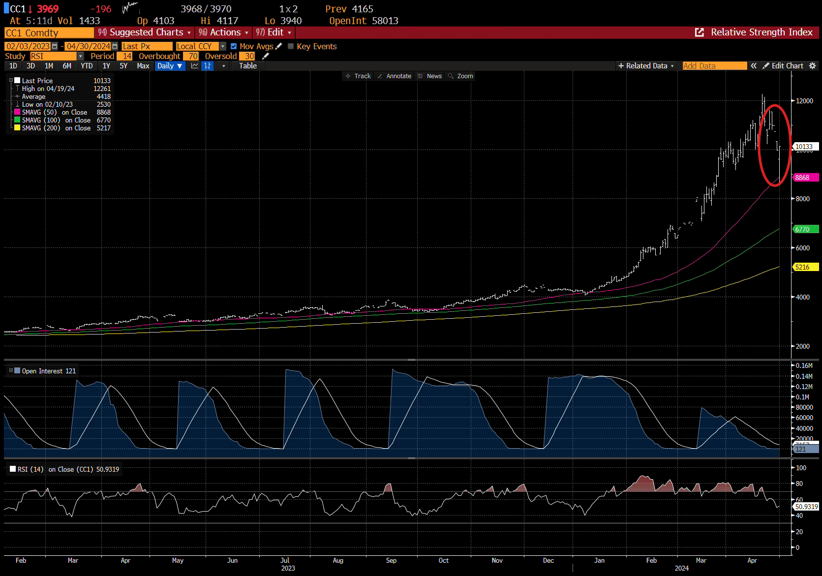 After that initial break, cocoa prices collapsed to the 100-day moving average.