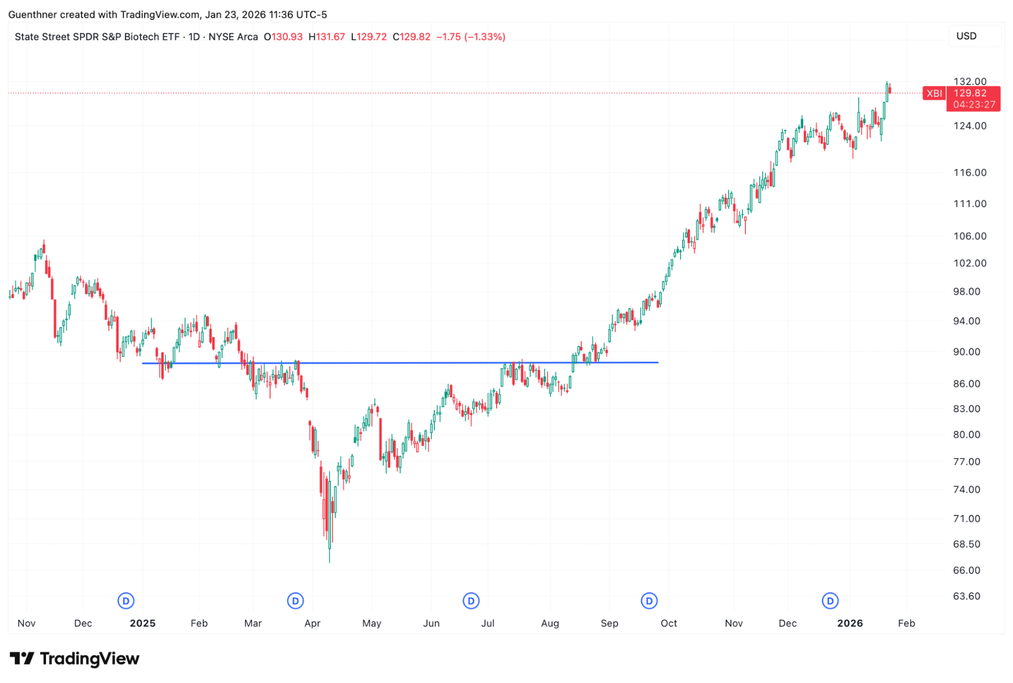 XBI is still fighting back toward those 2021 highs. It still has a lot of work left to do, but the incredible uptrend it has produced since breaking out in August 2025 has been nothing short of impressive.
