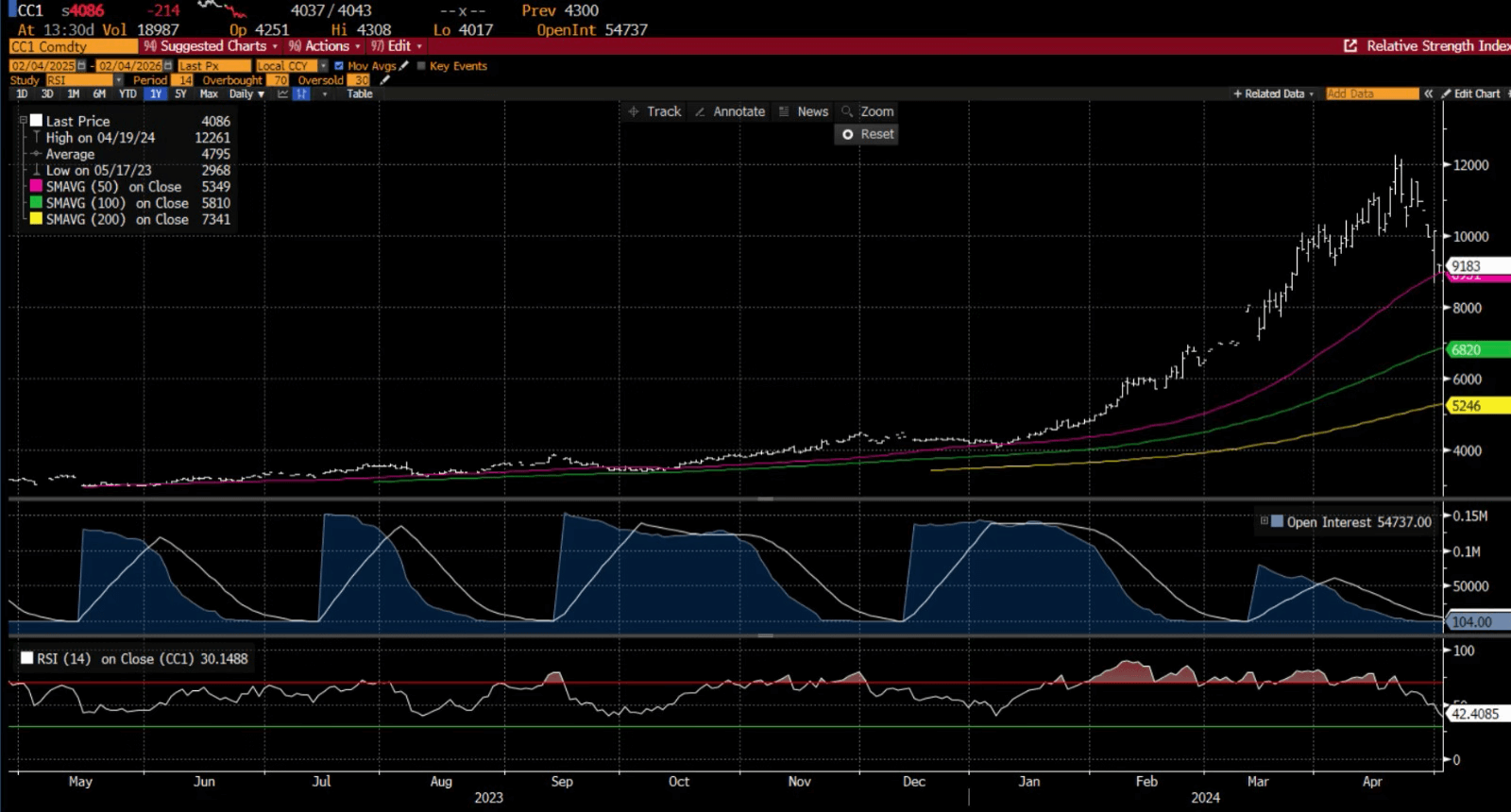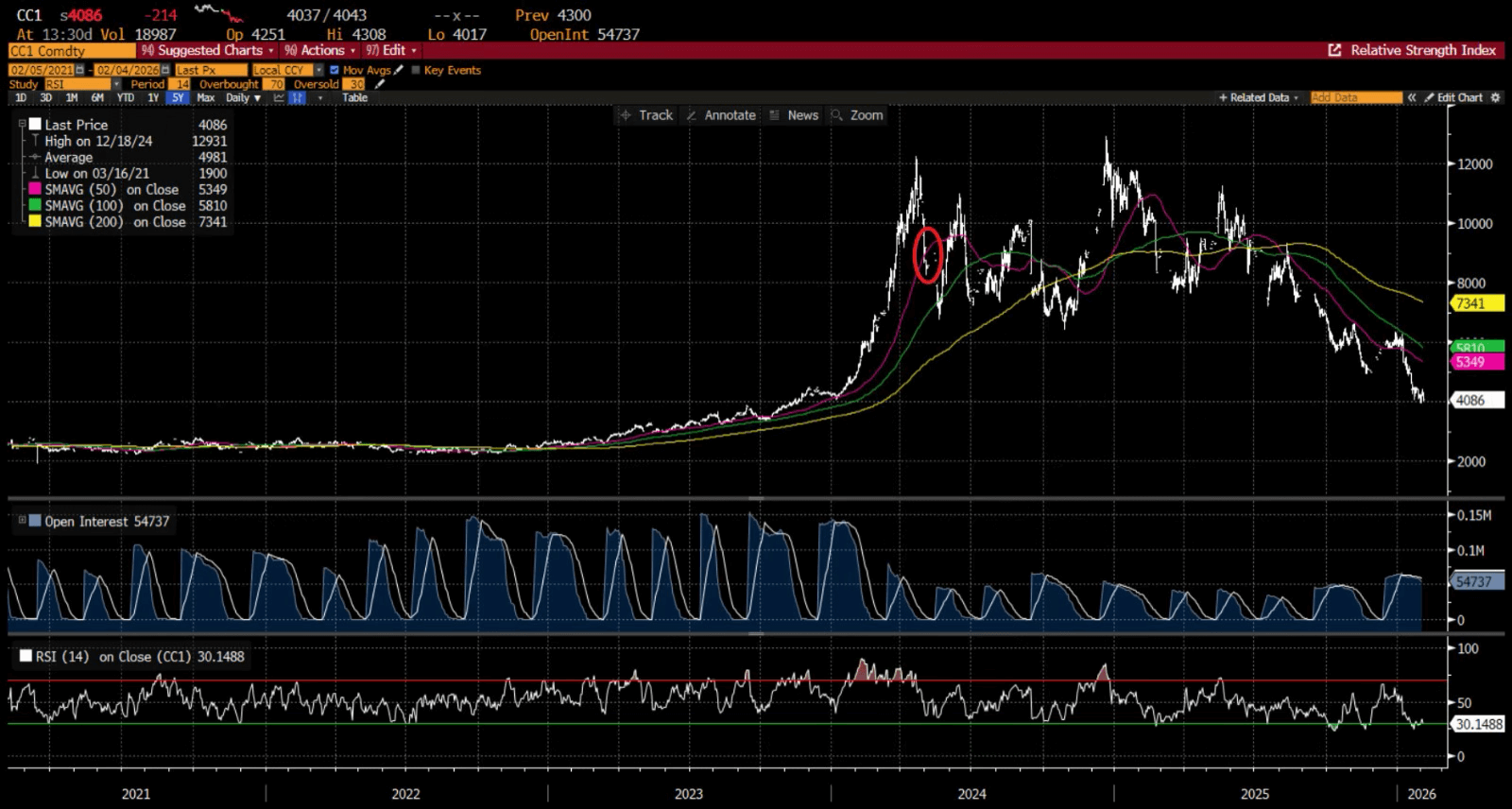 Fast forward to today and cocoa prices have collapsed more than 60%, settling near $4,000 per ton.
